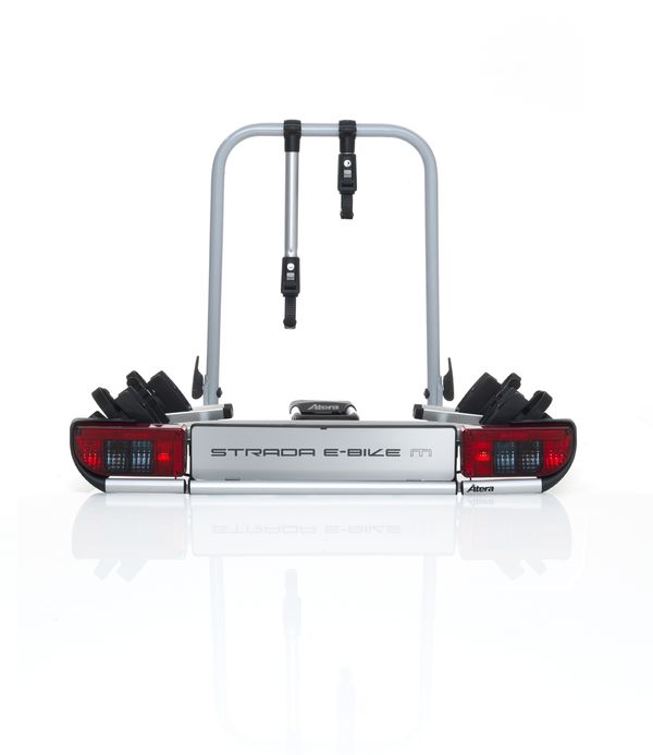 Heckträger Strada Sport M für E-Bikes von ATERA als Fahrradträger. Der Strada Sport M für Elektrofahrräder als Fahrradträger und Heckträger.